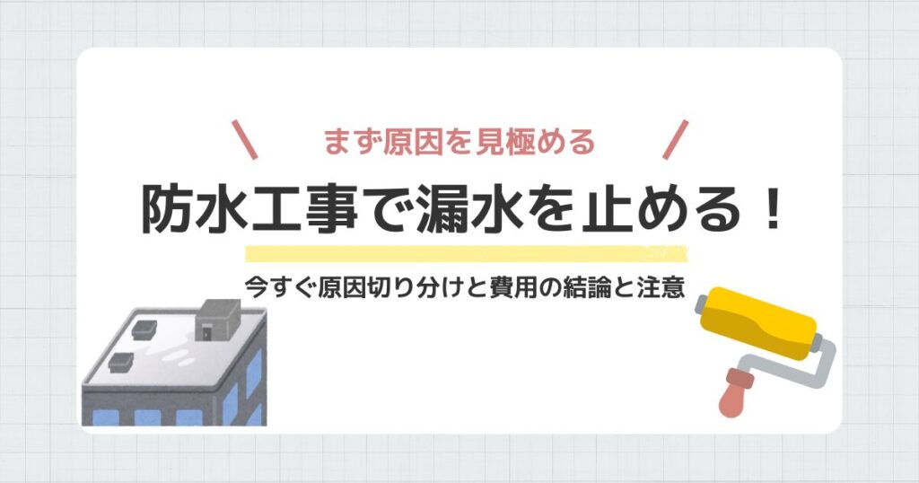漏水は、原因の切り分けと一次対応を先に行い、必要最小限の防水工事を選ぶことで解決へ近づきます。